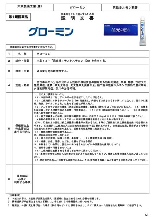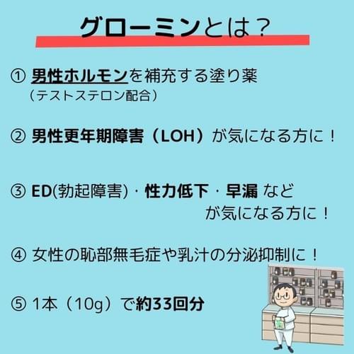 日本大東製藥推出的這款GLOMIN®男性賀爾蒙軟膏,採用與體內相同結構的睪固酮,